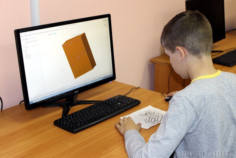 Что обозначает термин 3D. Термин происходит от англ. 3-Dimensional (размерный), что несет в себе сегодня достаточно много смыслов: трехмерное пространство, три измерения, трехмерная графика, стереоскопическое изображение, трехмерный принтер, трехмерная игра и т.д. И самое интересное в том, что 3-мерные объекты сегодня может научиться строить даже ребенок. Что и происходит на кружке 3D-моделирования и прототипирования, который начал работать в сентябре 2017 года. Несмотря на то, что прошло только несколько занятий, ребята уже могут создавать на компьютере трехмерные модели. Ведет занятия педагог дополнительного образования Систук Анна Александровна.
