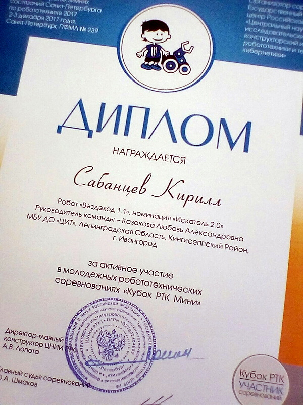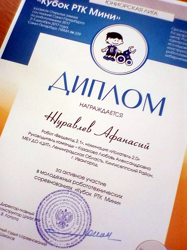 2–3 декабря в Санкт-Петербурге завершился финальный этап соревнований «Кубок РТК Мини» в рамках «Открытых зимних состязаний Санкт-Петербурга по робототехнике 2017» в категории «Искатель 2.0».