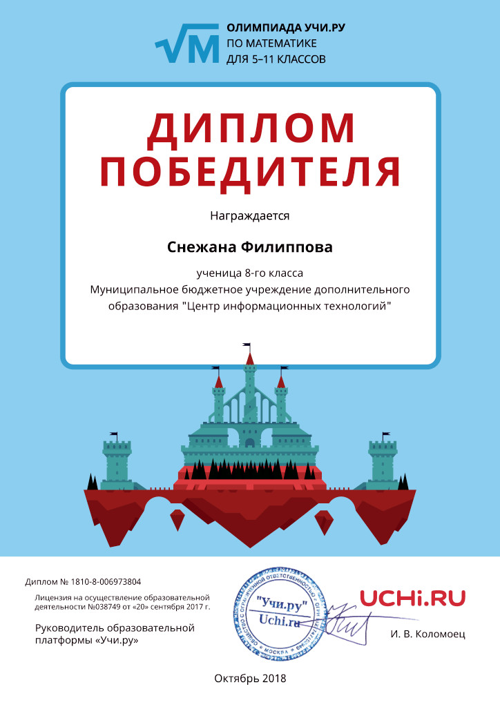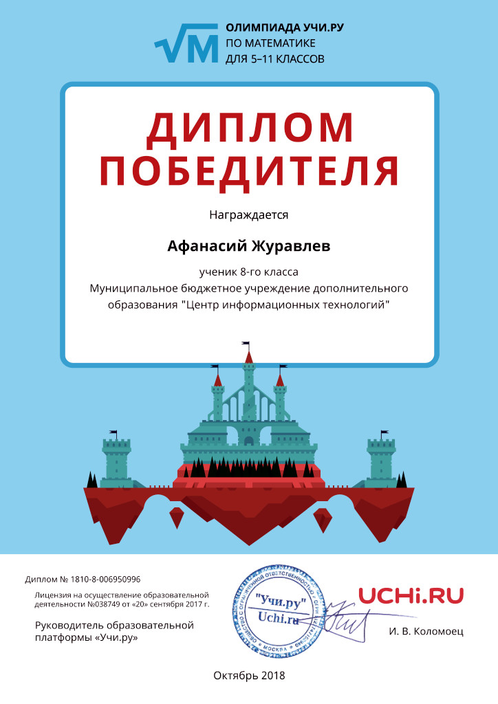 С 1 по 30 октября прошла Олимпиада УЧИ.РУ по математике для 5-11 классов.