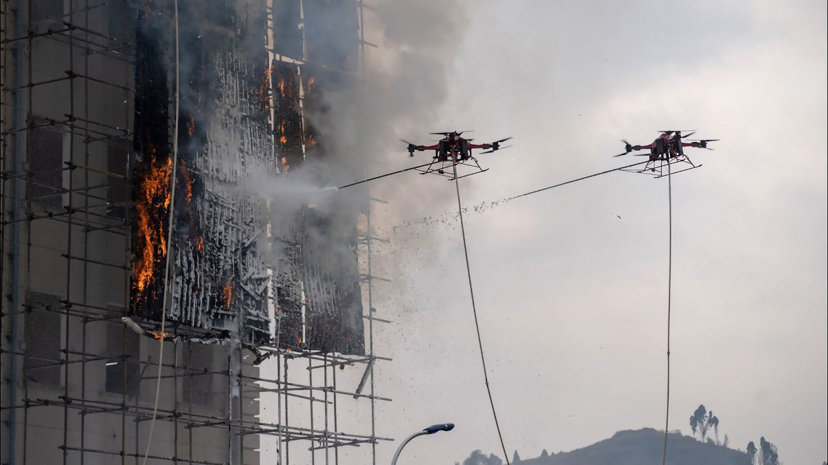 Помимо этого, существуют дроны-доставщики пожарных рукавов на высоту, а также дроны-пожарные, которые занимаются непосредственно тушением огня при помощи распыления воды или специальных порошковых и пенных составов.